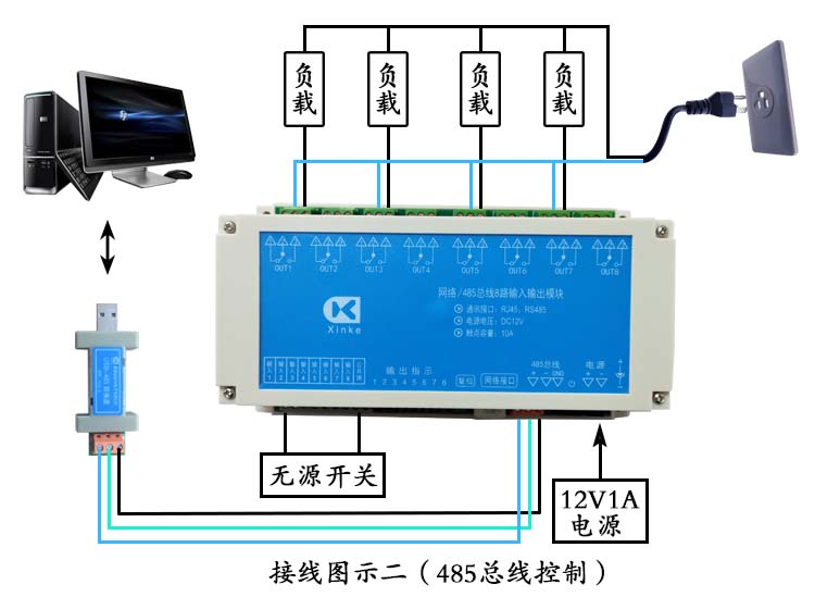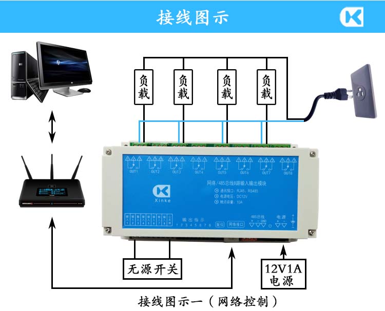 網絡串口RS485總線1/4/6/8/16路無源開關量輸入10A繼電器輸出模塊